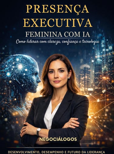 Presença executiva não é performance, é coerência. Este e-book integra liderança feminina, inteligência emocional e IA para sustentar decisões, influência e legitimidade no tempo